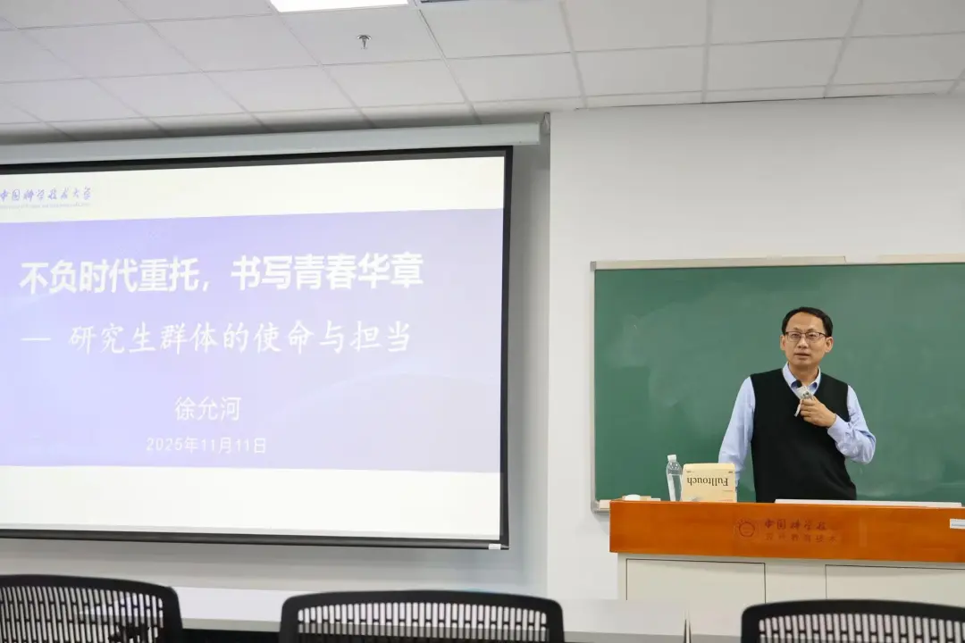 为强化研究生使命担当,引导研究生树立科研报国远大志向,11月11日晚,教育处邀请到中国科学技术大学化学与材料科学学院党委书记徐允河教授以《不负时代重托,书写青春华章》为题,为我所2025级研究生上了一堂生动的思政课。