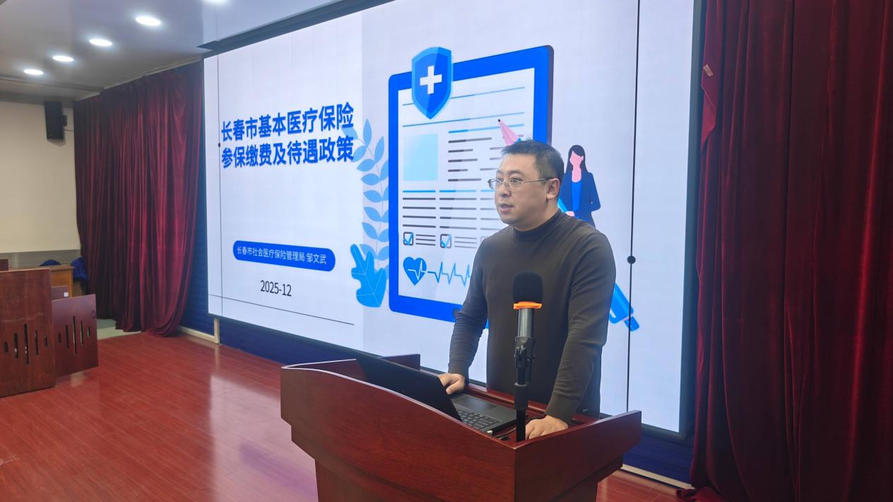 为切实保障研究生的医疗保障权益,帮助研究生准确掌握2026年长春市医保新政的核心要点,12月16日,教育处携手长春市社会医疗保险管理局,专门为在所全日制研究生举办的“2026年长春医保政策专题宣讲会”圆满落幕。长春市医保局业务专家邹文武老师受邀担任主讲嘉宾,活动以“政策解读+实操指导+互动答疑”的形式有序展开。